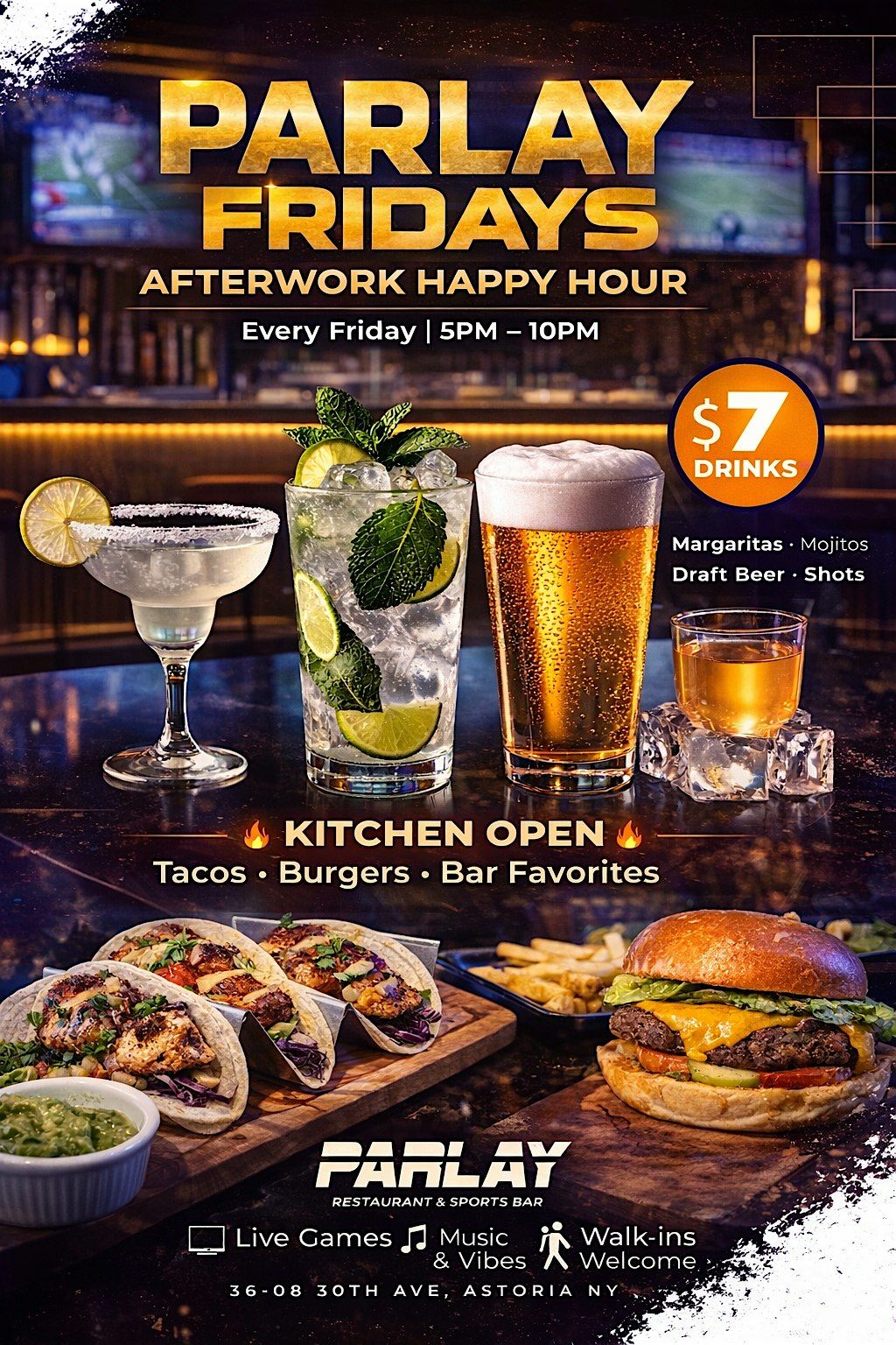 PARLAY FRIDAYSEVERY FRIDAY | 5PM–10PM | $7 DRINKS