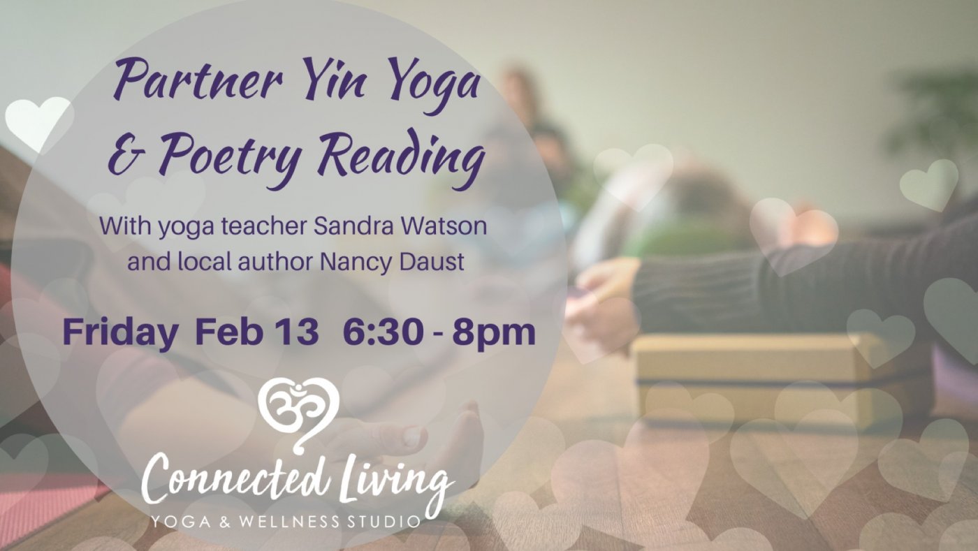 a partner yin yoga practice, while local poet Nancy Daoust, her romantic poems. Let the tension of the day to day melt and warm your hearts.
