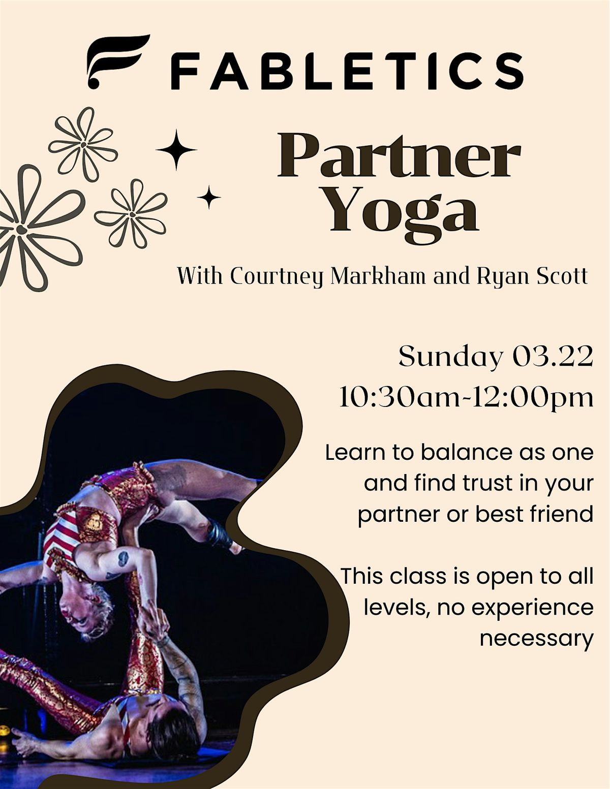 Join us in welcoming long time acro/circus partners, Courtney and Ryan! They will be showing us the ropes in learning how to trust your partner (or bestie), using the other person as counterbalance so you both may balance as one unit.