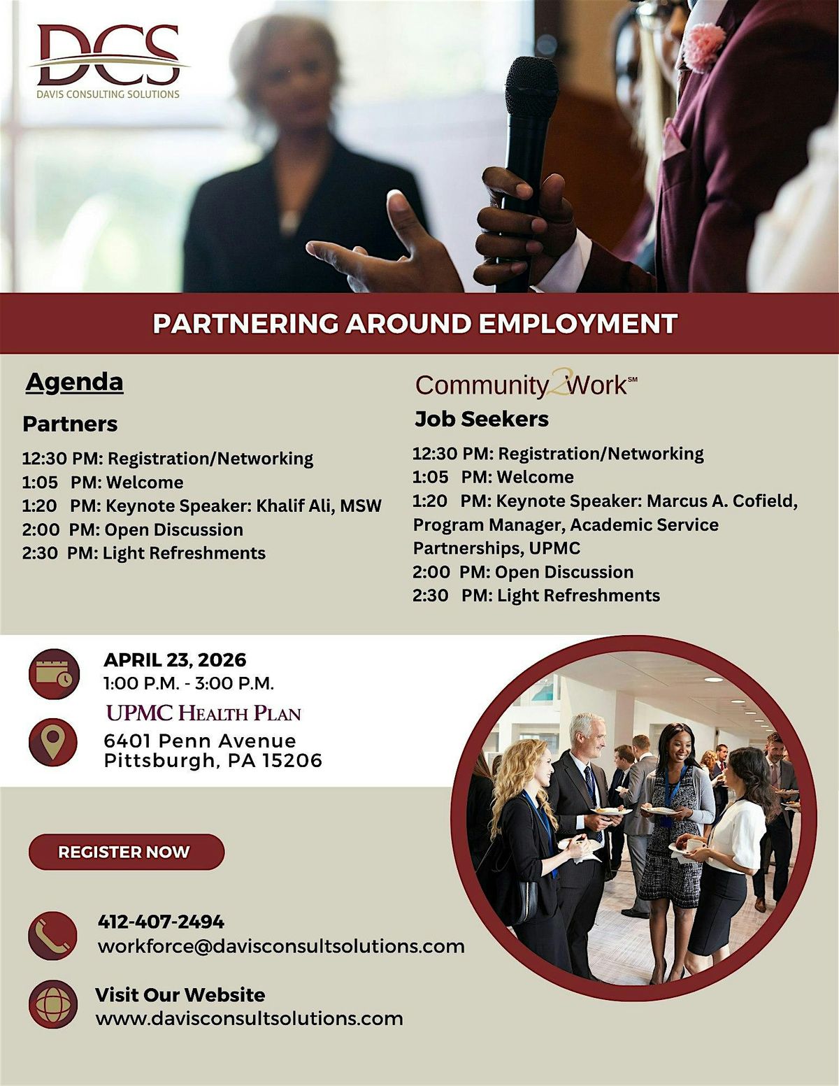 Join us for Partnering Around Employment on April 30, 2026, an interactive community workforce event where employers, community partners, and job seekers come together to connect, collaborate, and strengthen employment opportunities across Pittsburgh.