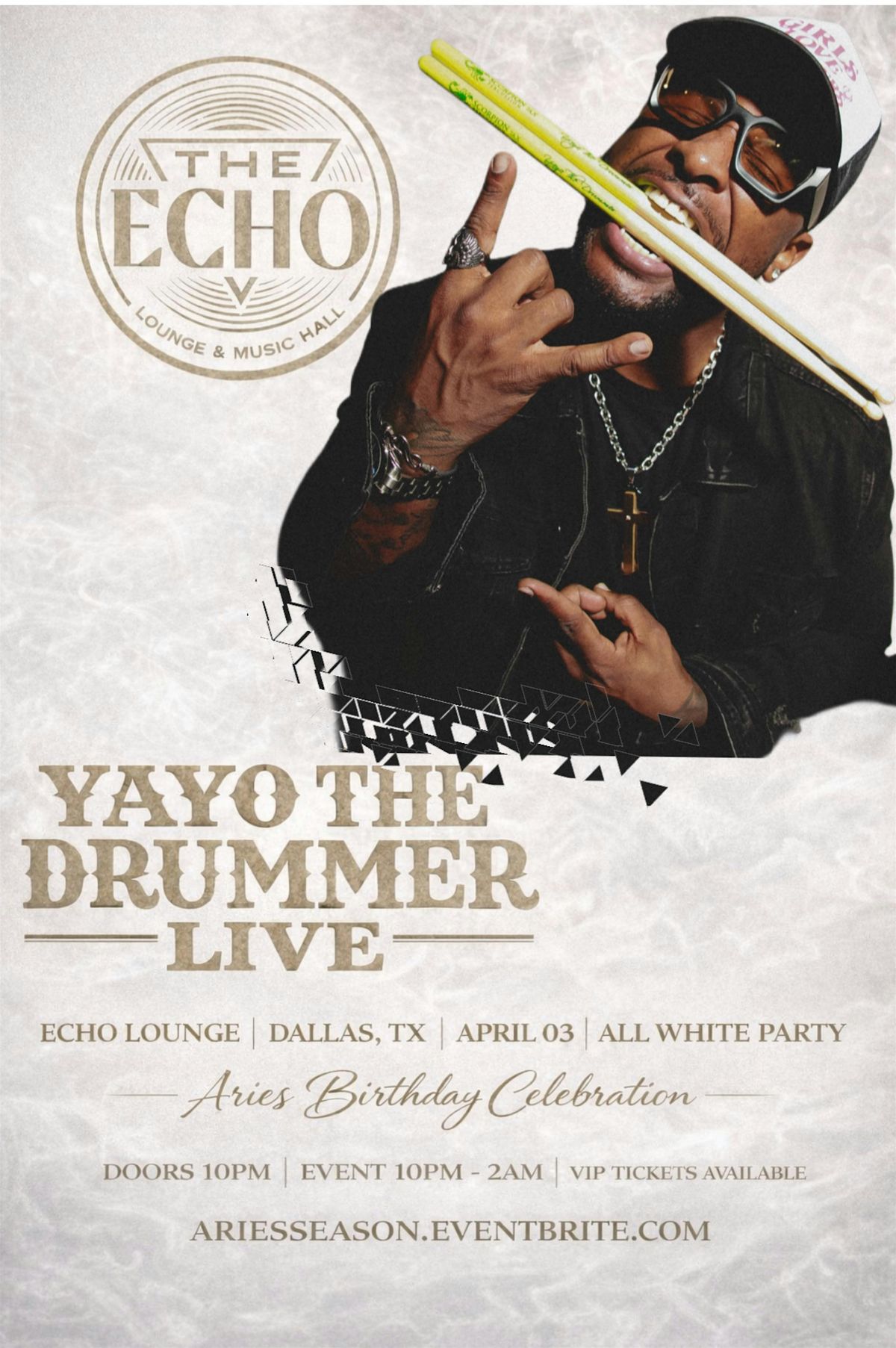 Expect a high-energy night of live music, DJ sets, and a room full of people dressed in all white celebrating Aries season. This Dallas nughtlife event at Echo Lounge featrures a high-energy live drummer performance and Aries season celebration.