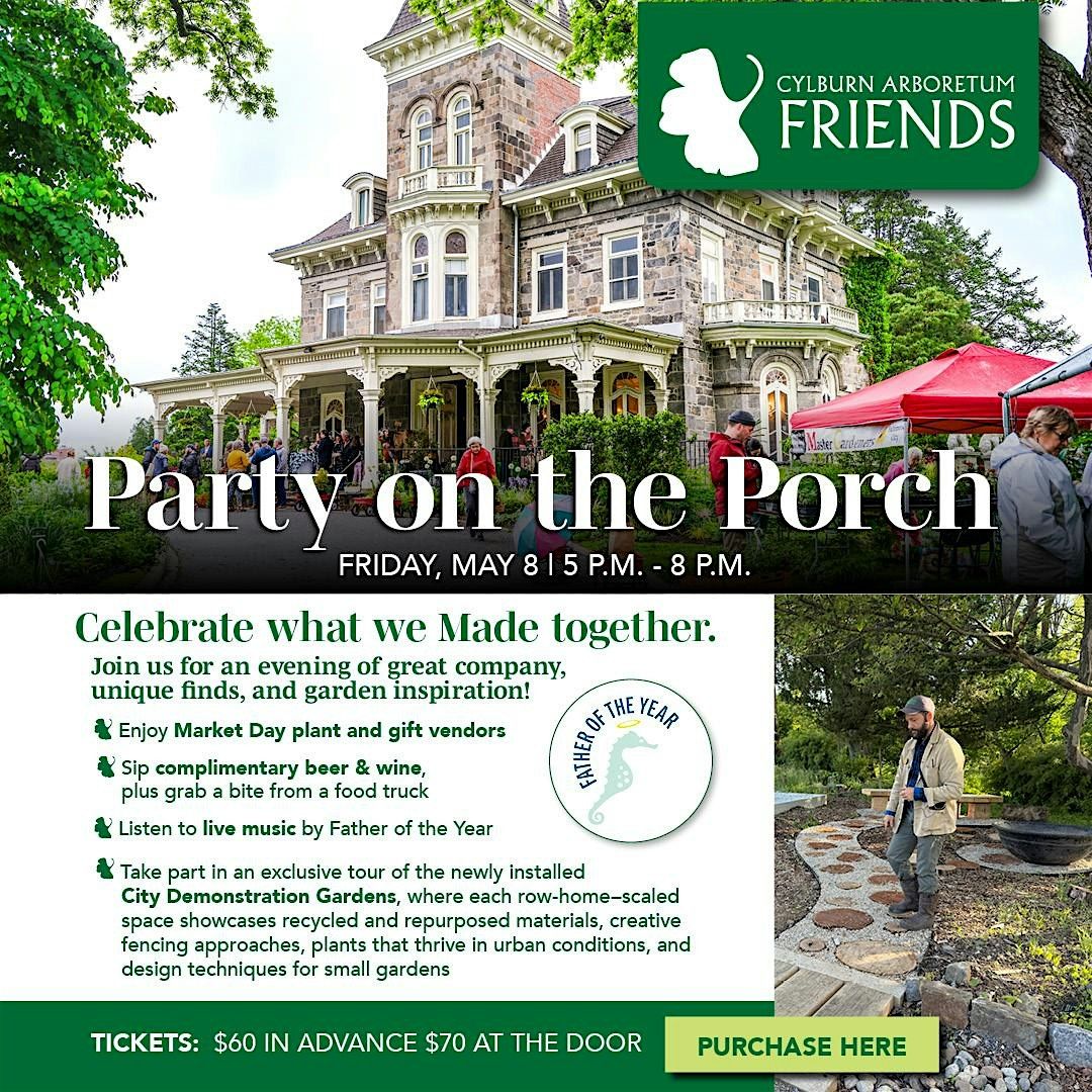 Shop, sip, socialize, and support Cylburn Arboretum Friends at Party on the Porch on Friday, May 8 (5PM-8PM)! Browse Market Day plant and gift stalls, enjoy complimentary beer and wine, or purchase a bite to eat from an on-site food truck. Soak in live music by Father of the Year Band and take a tour of the City Demonstration Gardens.