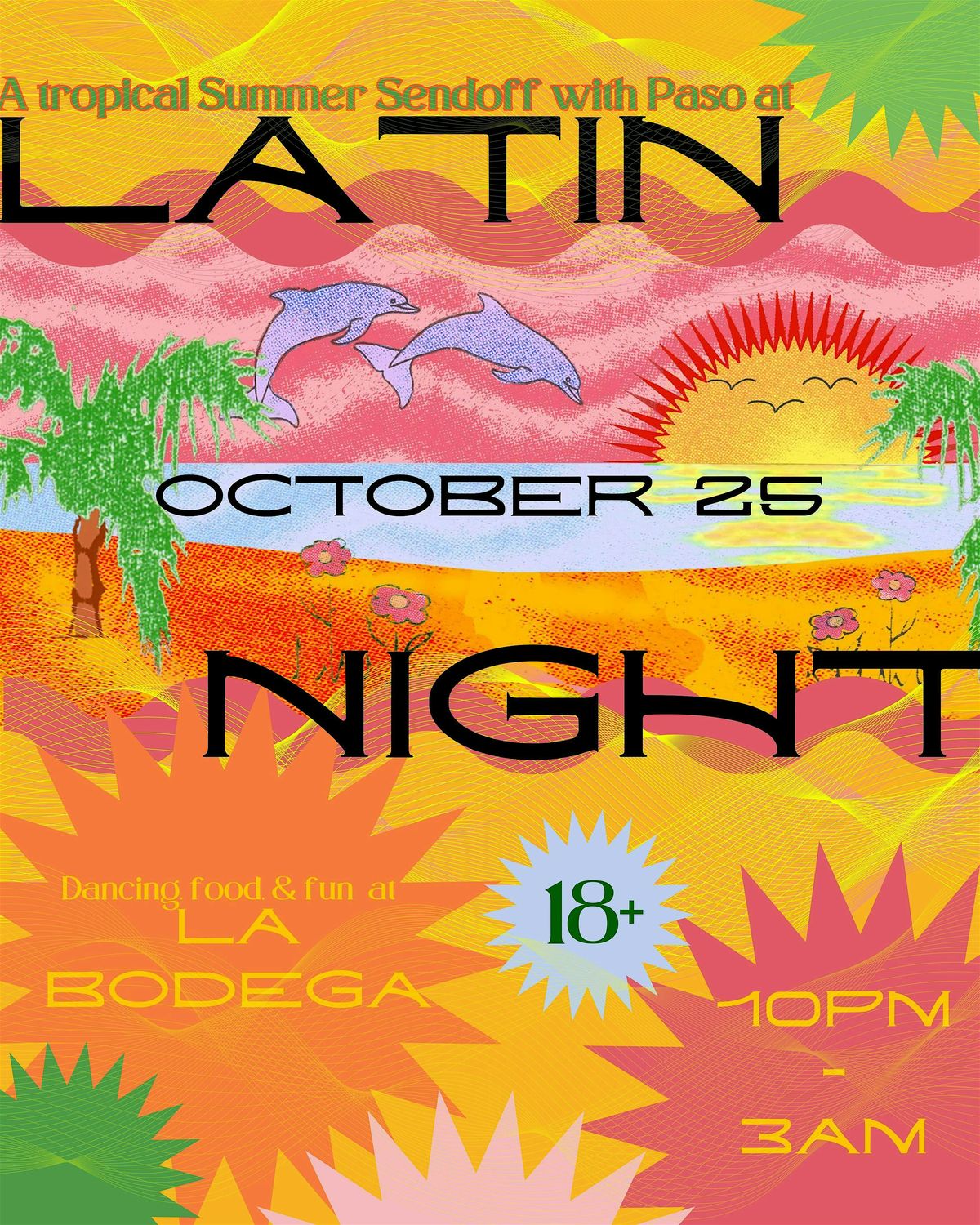Join Paso for our Latin Night at La Bodega! There will be a DJ, food and drink specials along with some snacks to purchase from the market!