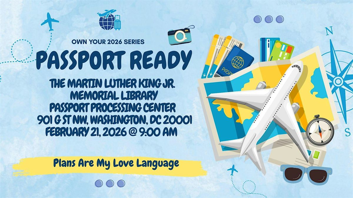 Let’s meet at the MLK Passport Processing Center at the Martin Luther King Jr. Memorial Library in Washington, DC to submit your passport application together. Note: You are responsible for filling out the application and pay the appropriate fees. This day is to help you have a specific date to get it done by.
