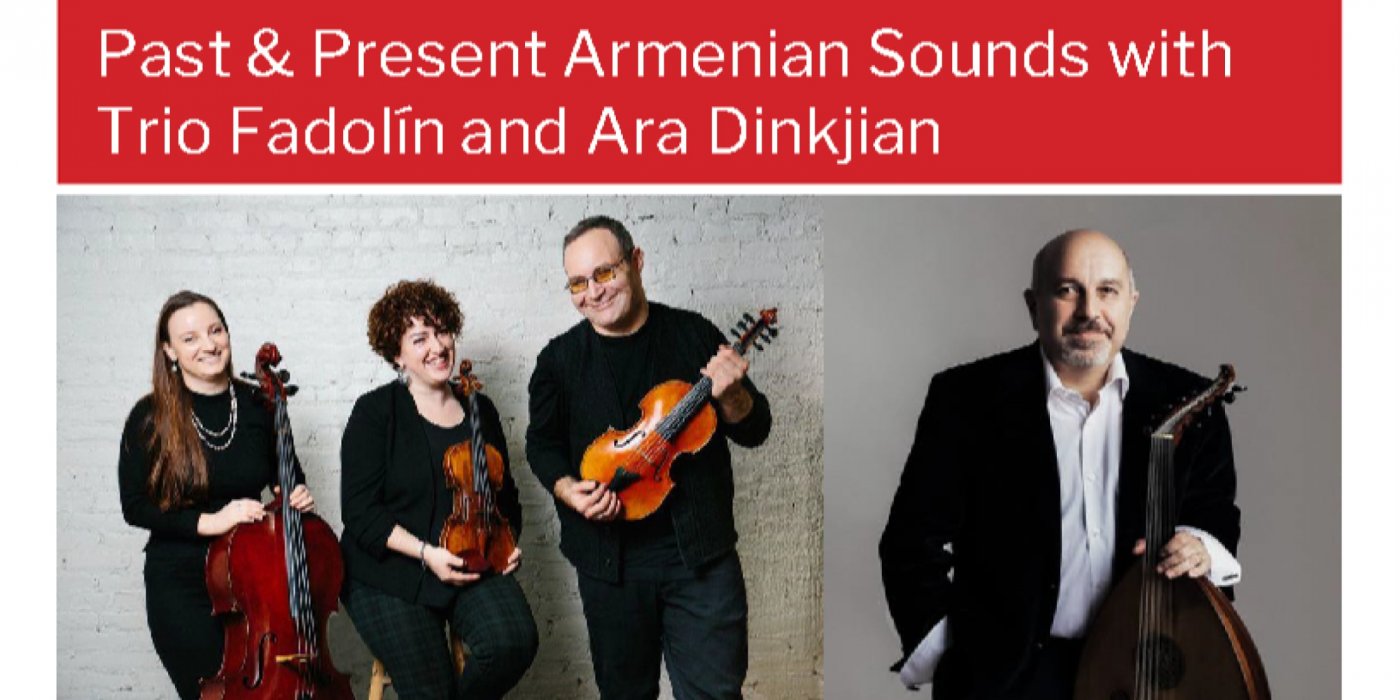 Join us for an evening of Armenian music blending folk traditions with modernist and contemporary forms, performed by Trio Fadolín, featuring a special guest appearance by oud virtuoso, Ara Dinkjian.