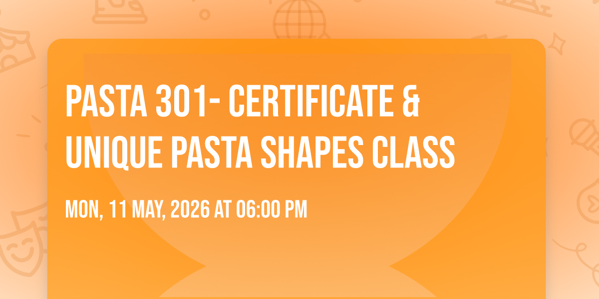 Welcome to this 2-hour immersive pasta-making class & your final class of three earning you a PASTA MASTER Certificate ! Today, we’re diving into the world of unique and imaginative pasta shapes, so get ready to unleash your creativity. I’ll guide you through a series of traditional and inventive techniques, just like the Nonnas do in Italy. You’ll learn how to craft handmade pastas, using your hands and intuition to create one-of-a-kind shapes.Once we’ve made our pastas, we’ll finish off the experience by preparing a fresh, aromatic basil pesto to complement your delicious creations. Followed by a PASTA MASTER certificate presentation and group picture! Waters and snacks will be provided BYOB is welcome. $50 per person. Message me to join.
