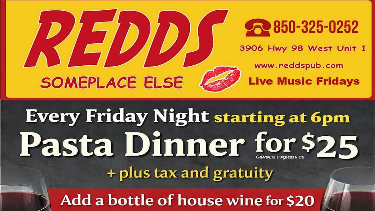 Pasta dinner for 2 for $25 plus tax and gratuity. Add a bottle of house wine for $20. Starts at 6pm. Every Friday.