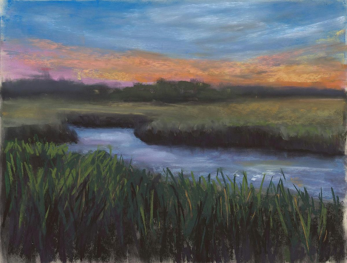 Over two hours, you’ll learn the fundamentals of pastel techniques—including blending, layering, and mark-making—while working step-by-step on a simple, beautiful subject. I’ll guide you through step by step to paint this peaceful marsh scene!