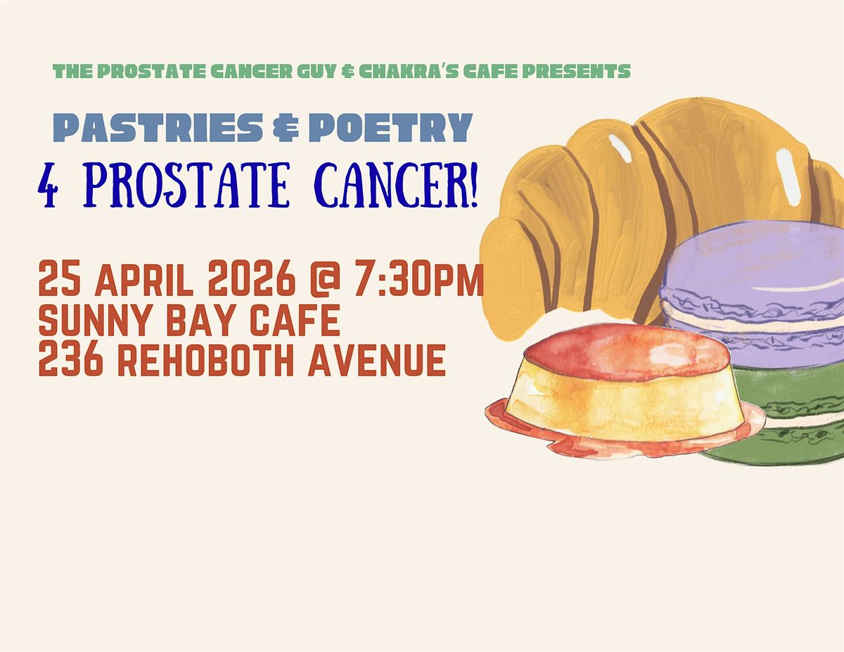 Please come join us as Paul Williams, otherwise known as The Prostate Cancer Guy, graces us with his uplifting comedy routine, as well as other local artists, who will share a poem, spoken word, or life experiences in their battles with cancer! Chef Tierra Williams of Chakra's Cafe will cater the muilt-course pastry delight!