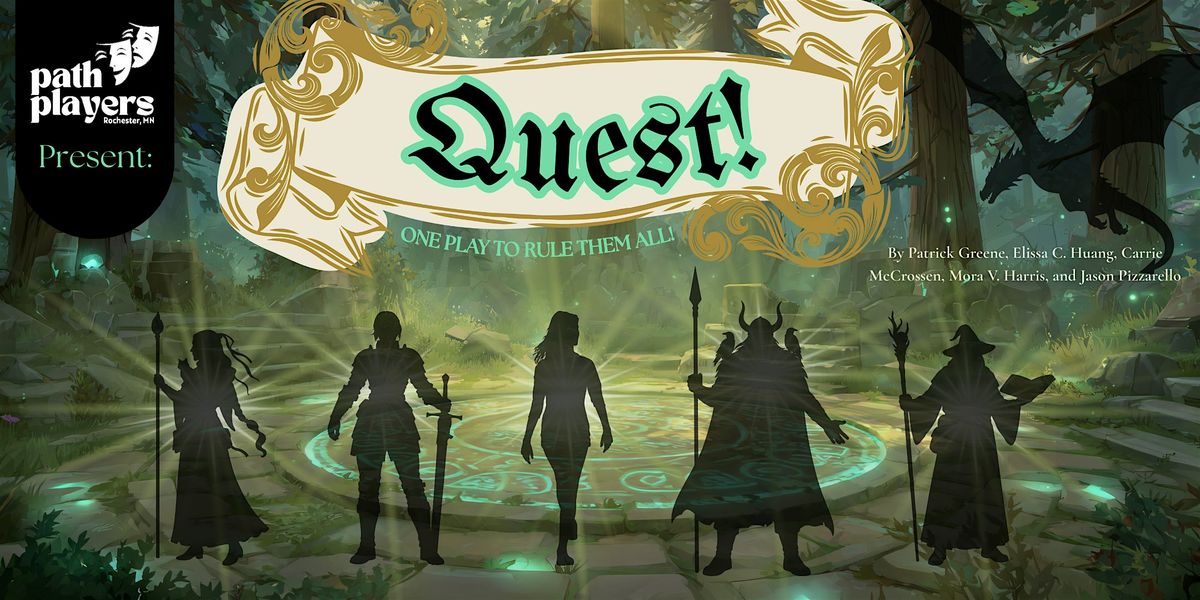 Path Players present: Quest! One Play to Rule Them All! A great oracle searches all the land for the greatest living heroes to save the realm...only to find some mid-tier adveturers with questionable excuses! This show is a celebration of all things "fantasy genre" with wizards and theives and dragons and elves, and lots of laughs along the way. An all-ages show!