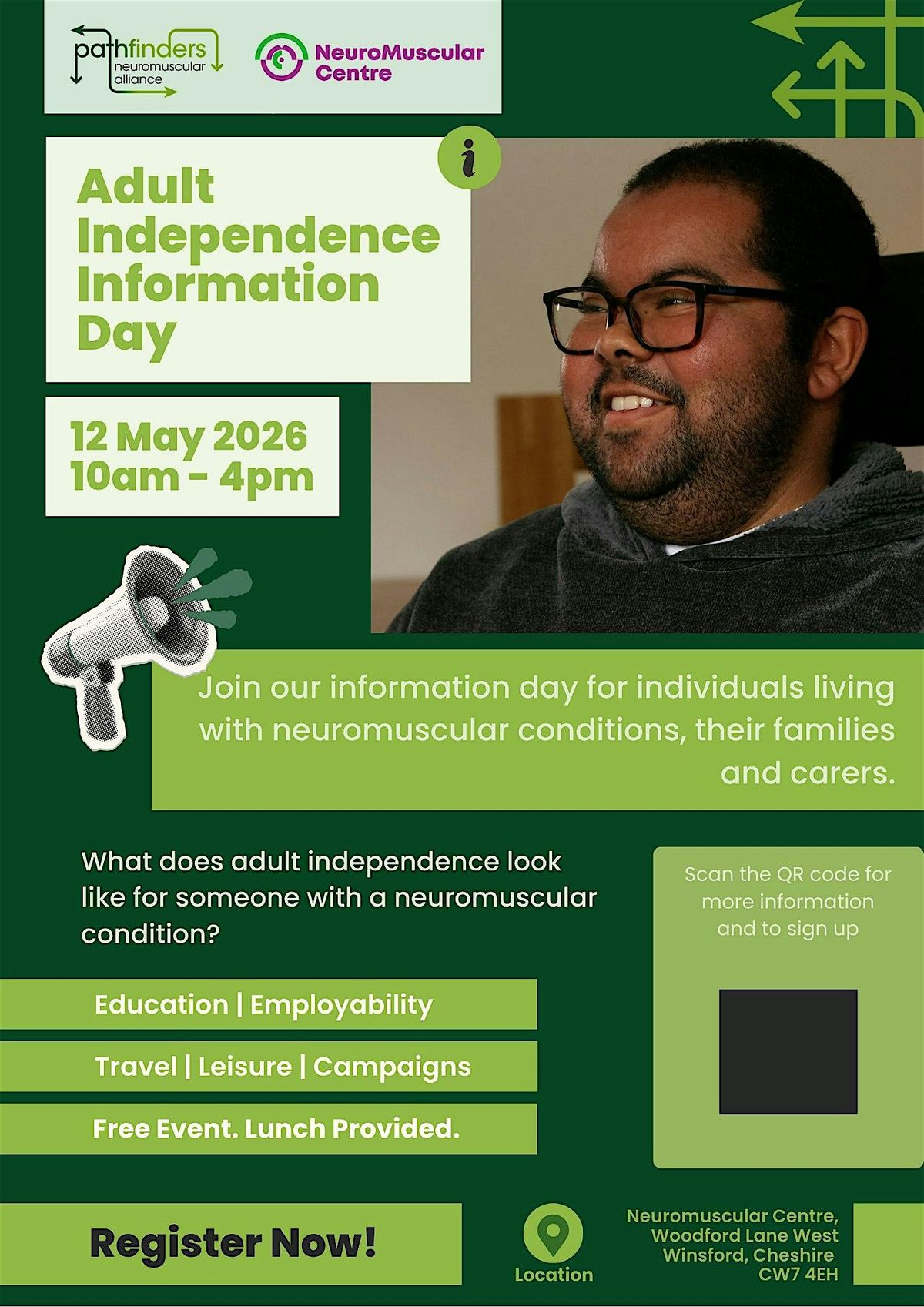 Whether you are living with a neuromuscular condition, a carer, family member, or healthcare professional, this event is for you. We want to make sure that everyone in the region knows what is out there to help them live life to the fullest, across education, employment, travel, and beyond.