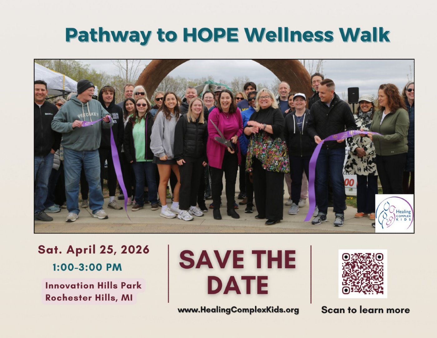 Healing Complex Kids invites you to the annual Pathway to HOPE Wellness Walk on Saturday, April 25, 2026, from 1–3 PM at Innovation Hills in Rochester Hills.