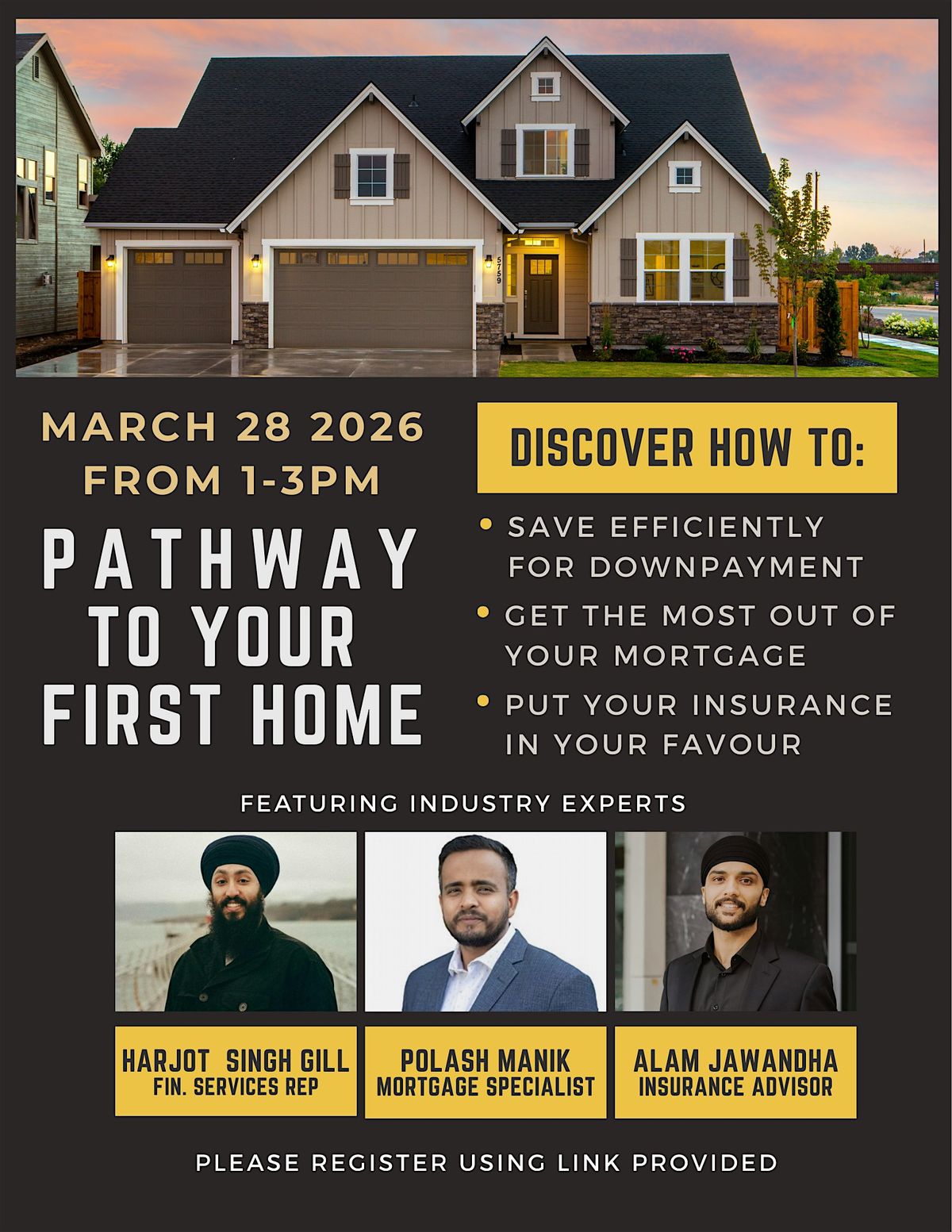 Thinking about buying your first home? Join us in person for Pathway To Your First Home, a laid-back event where you'll get the lowdown on everything you need to know! From tips on financing to navigating the market, we've got you covered. Come meet others on the same journey and get your questions answered face-to-face. Don't miss out on this chance to make your dream home a reality!
