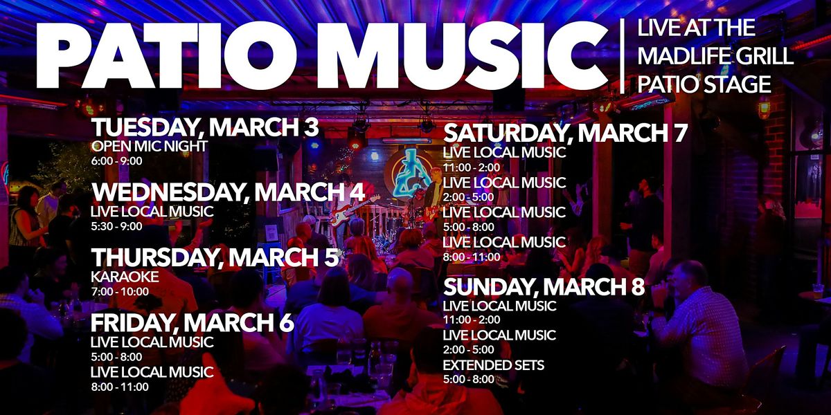Now that our Patio can be fully enclosed, we will continue to book your favorite local and regional musicians through the winter months! Be sure to watch our calendar and future emails for MadLife’s weekly patio artist schedule.