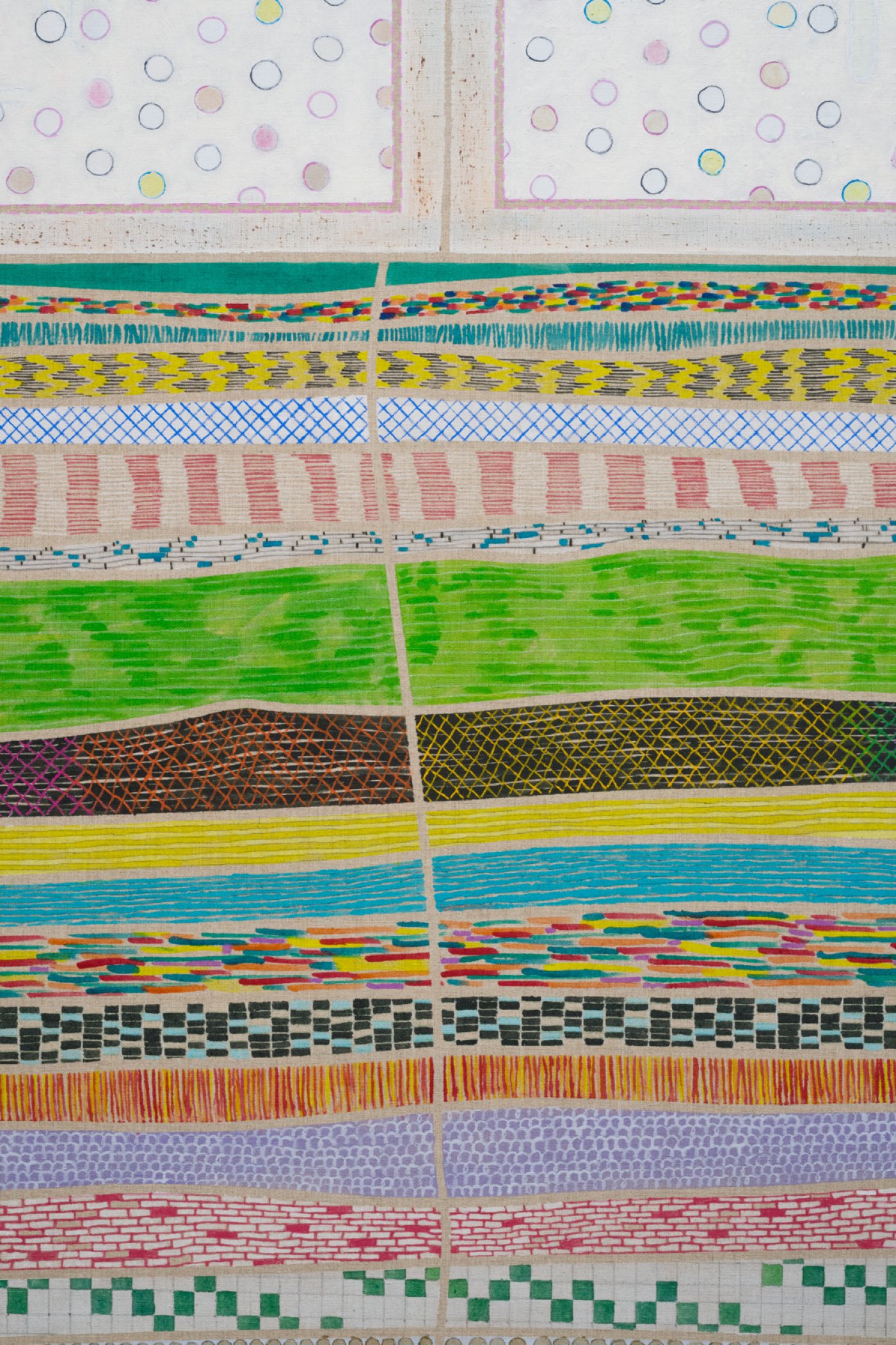 Across multiple mediums—including distemper, egg tempera, watercolor, shellac, oil stick, metal leaf, and oil paint—Howlett constructs richly complex surfaces that hold space as much as depict it. His practice remains rooted in attentive looking and ongoing revision, producing paintings that continually renegotiate their own structure and meaning.
