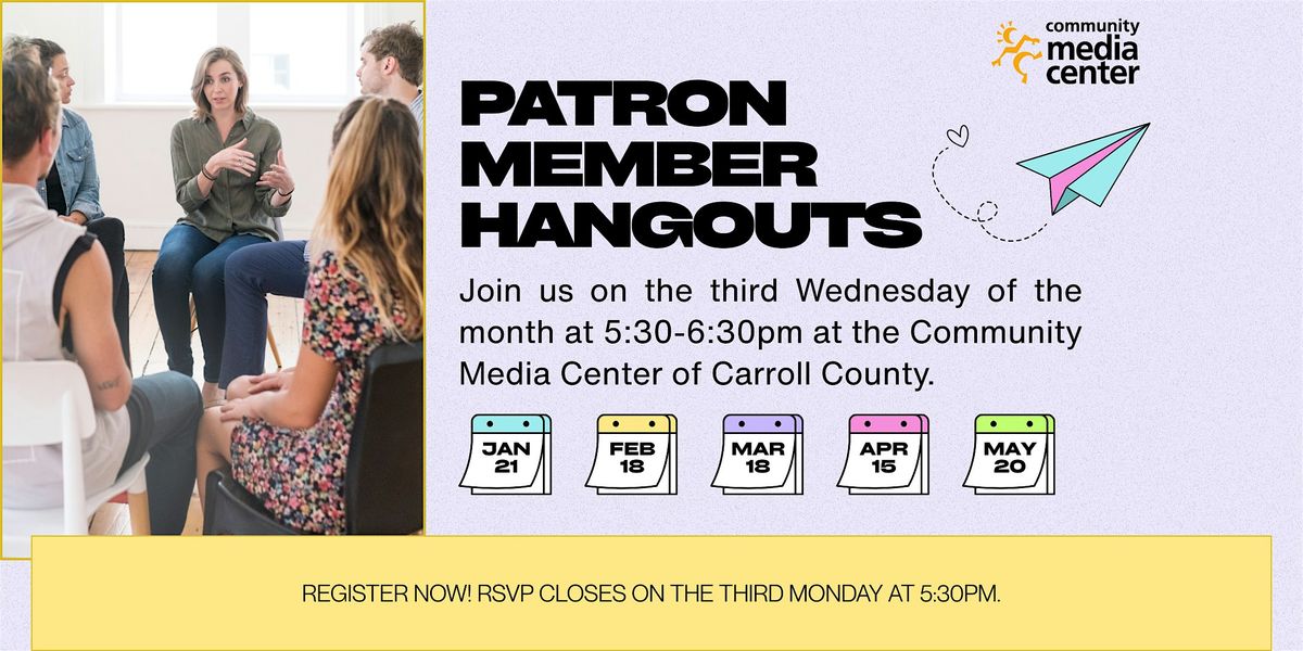 Patron Hangouts happen monthly on the third Wednesday at 5:30pmAbout this Event