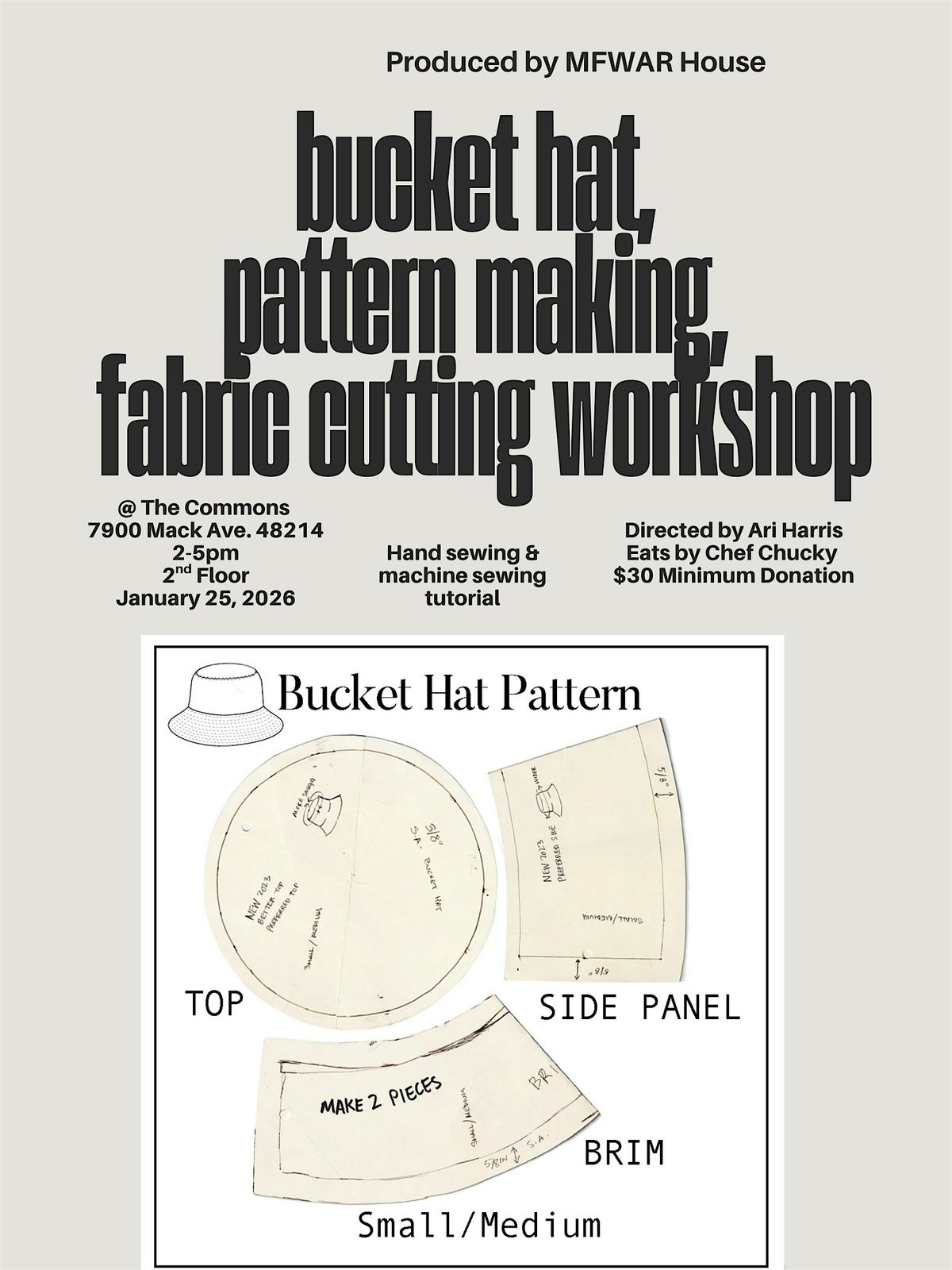 Hands on workshop for bucket hat pattern drafting, and fabric cutting. Guest leave with a custom hat pattern to sew by hand or machine.About this Event