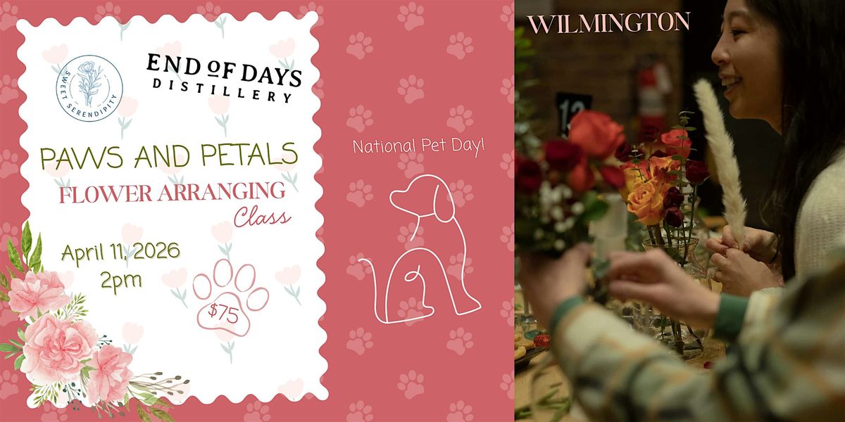 Come celebrate National Pet Day! Learn the basics of floral design with local NC blooms at End of Days Distillery! This class will feature ALL pet friendly blooms, and unique greenery. Guided instruction will teach you all the tips and tricks you need to make a beautiful arrangement to bring home with you. You will learn what flowers and greenery to avoid for your furry friends and get a special goodie bag to take home with you!