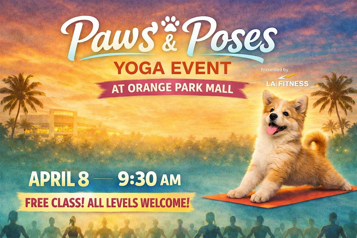 Join us for a fun and relaxing Puppy Yoga Pop-Up hosted by LA Fitness at Orange Park Mall!