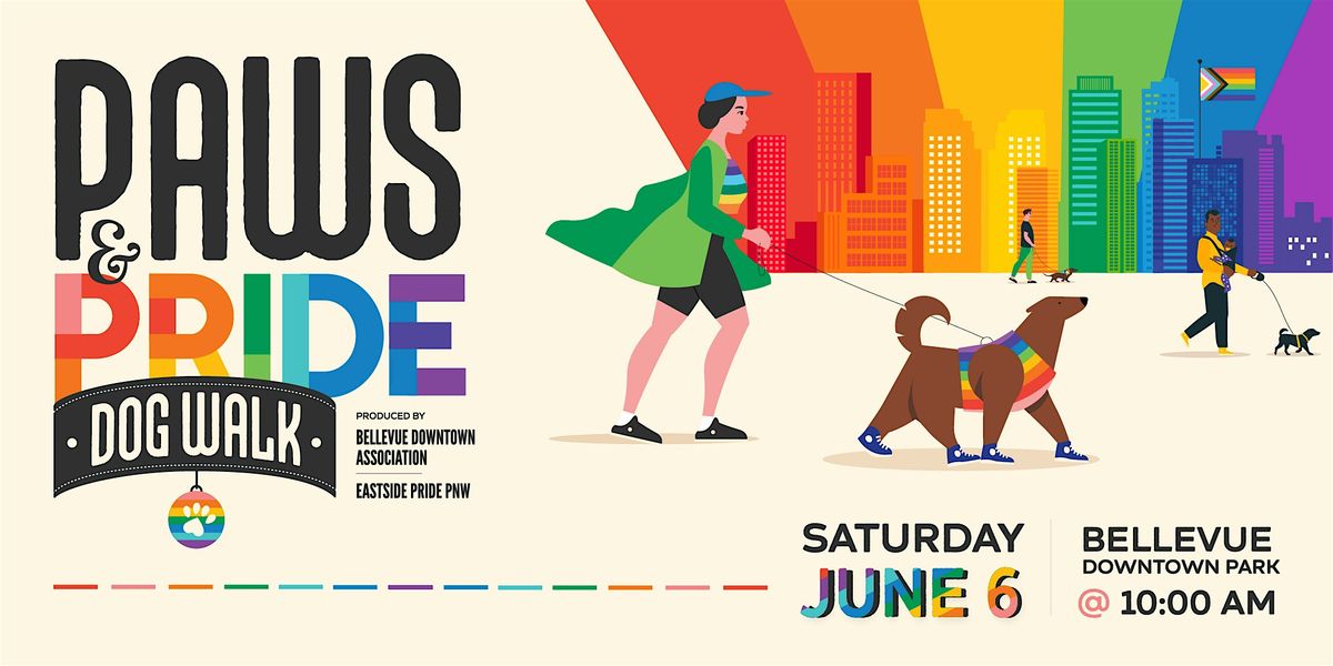 The Bellevue Downtown Association and Eastside Pride PNW are proud to produce Paws & Pride Dog Walk, on Saturday, June 6th at Bellevue Downtown Park (south of Bellevue Square).