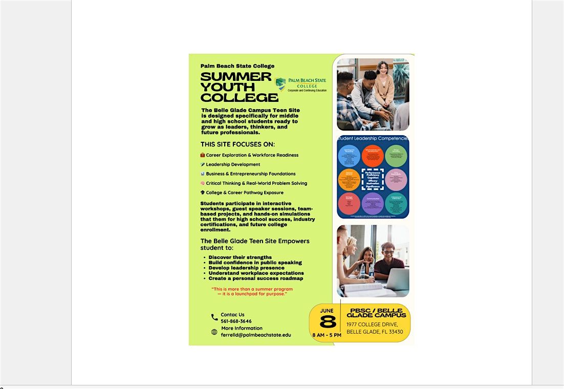 The Belle Glade Campus Teen Site is designed specifically for middle and high school students ready to grow as leaders, thinkers, and future professionals.