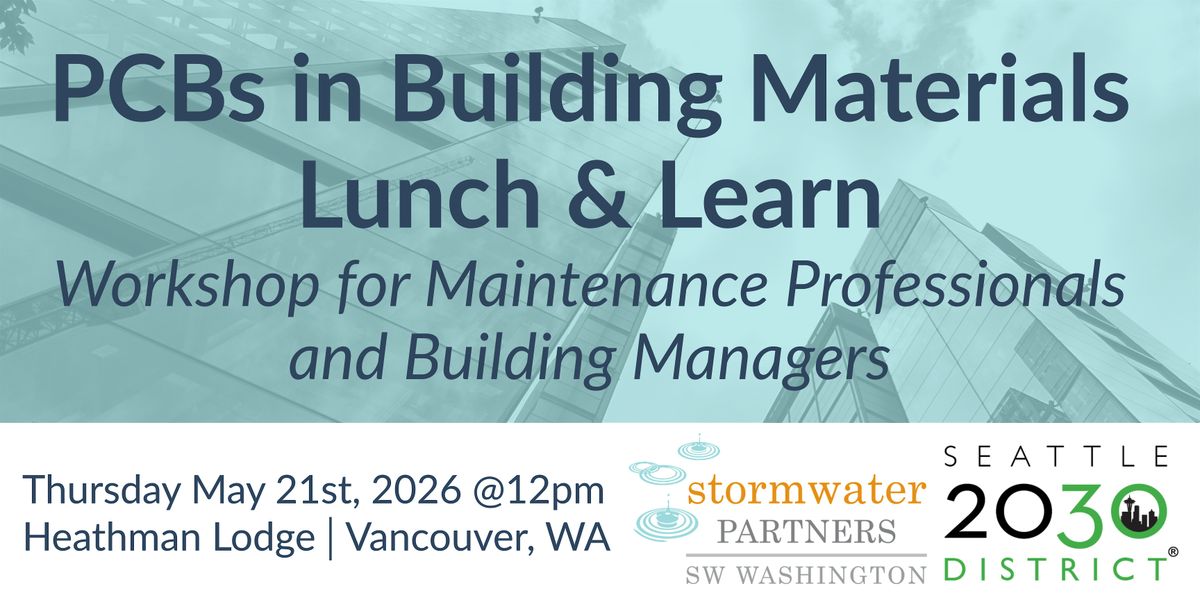 Want to know how to protect your maintenance teams and/or tenants from the risks associated with PCBs? Join the Stormwater Partners of Southwest Washington and the Seattle 2030 District on Thursday May 21st @12pm for an in-person PCBs in Building Materials Lunch & Learn at the Heathman Lodge in Vancouver, WA.