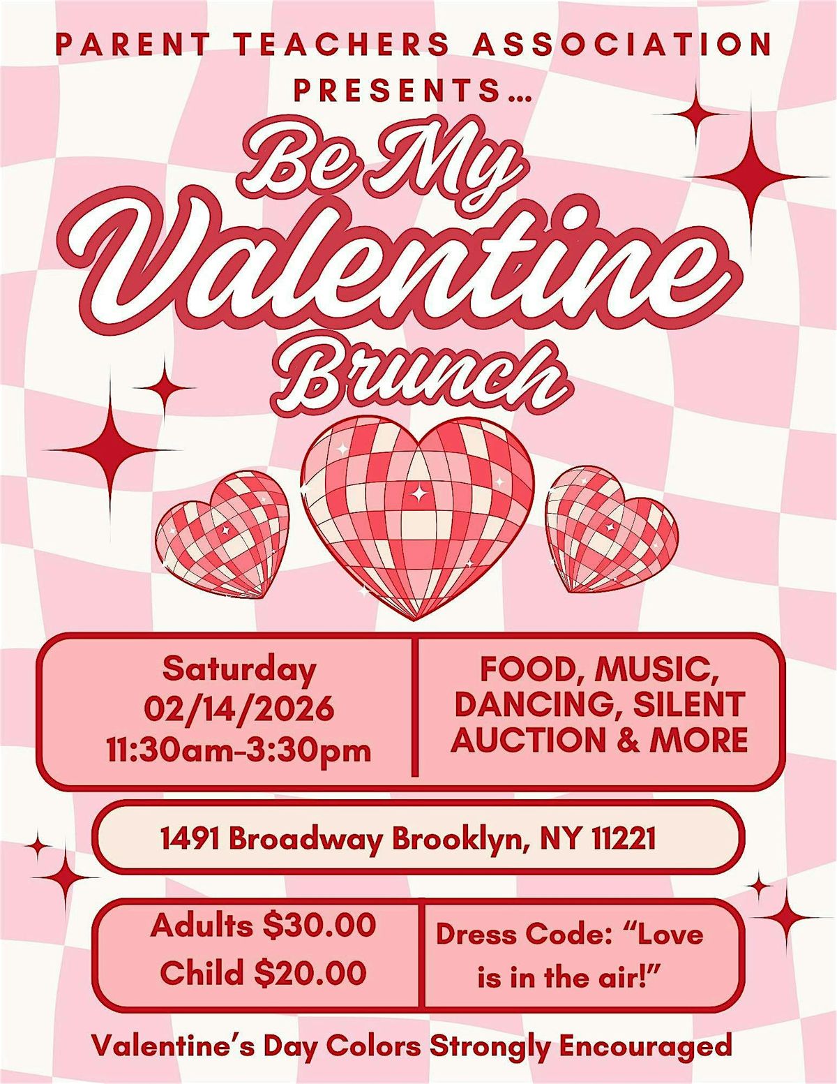 Join us for a sweet and stylish Be My Valentine’s Day Brunch, hosted by the PTA! This special event is all about love, community, and togetherness as we celebrate Valentine’s Day with good food, great company, and joyful vibes.