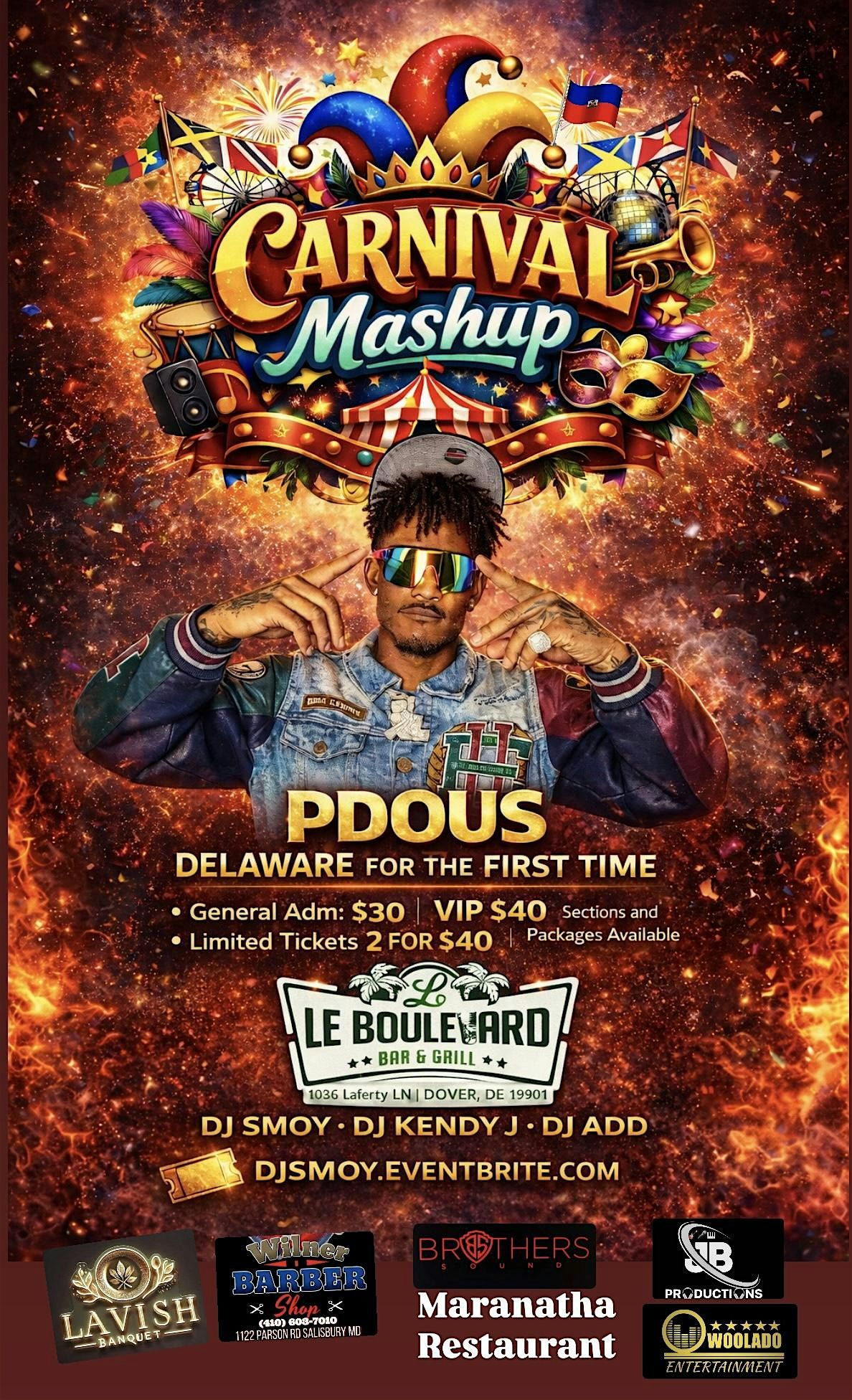 Get ready for a high-energy Carnival Mashup night as PDOUS takes over Delaware for his first-ever performance in Dover!