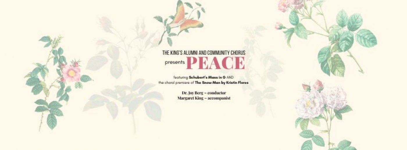 Join us for an inspiring evening of choral artistry as The King's Alumni and Community Chorus presents Peace — a concert that reflects on serenity, hope, and the quiet strength that music brings to our lives.