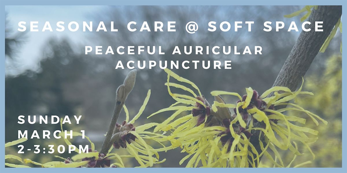 We're delighted to, once again, invite you to join us for a balancing reset with peaceful and reflective community auricular (ear!) acupuncture as we transition from winter into spring. Our resident acupuncturist Joanna of Milkweed Acupuncture will guide you through the NADA protocol, a renowned 5-needle auricular treatment that is deeply soothing to mind, body, and heart.👂 ♥️