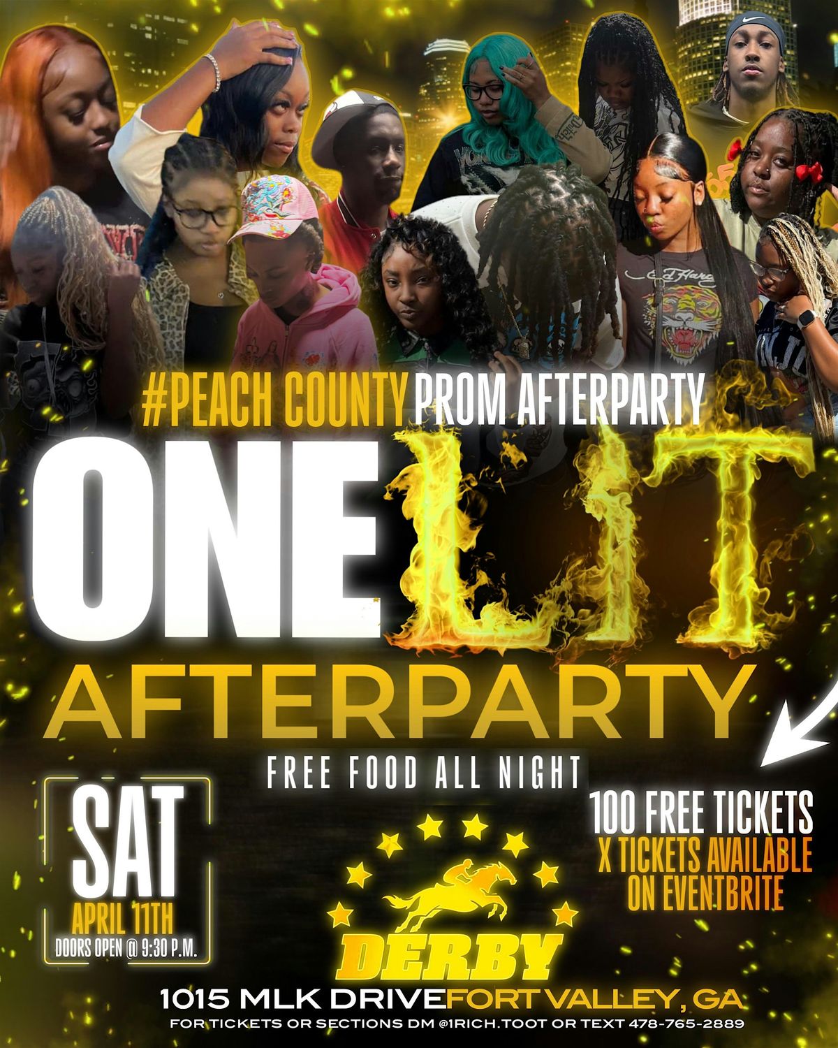 Pop out Saturday April 11th One Lit Afterparty #Peach County Prom Afterparty at The Derby Bar & Grill doors open @ 9:30 p.m. x Free Food