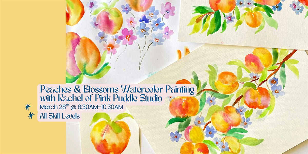 Join Rachel, of Pink Puddle Studio, on Saturday morning, March 28, 2026 at 8:30am on the Botanica Patio at The Farm at South Mountain for a watercolor workshop! We will be painting a mix of peaches and peach blossoms. All skill levels are welcome!