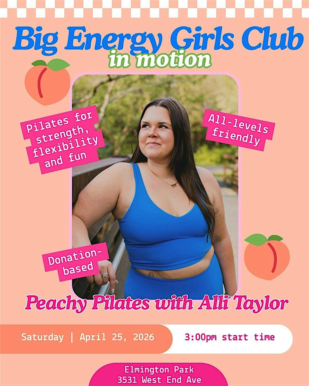 Join us for Peachy Pilates, an energizing outdoor event hosted by Big Energy Girls Club and led by certified Pilates and yoga instructor Alli Taylor!