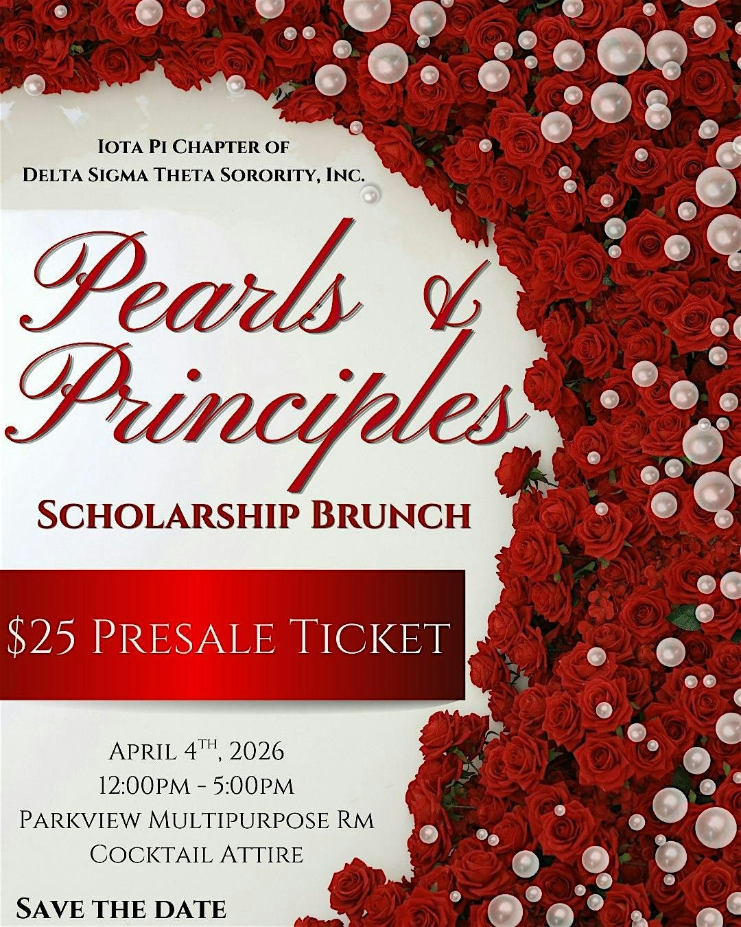 Join us the Iota Pi Chapter of Delta Sigma Theta Sorority, Inc. for the Pearls & Principles Scholarship Brunch celebrating bright futures!About this Event