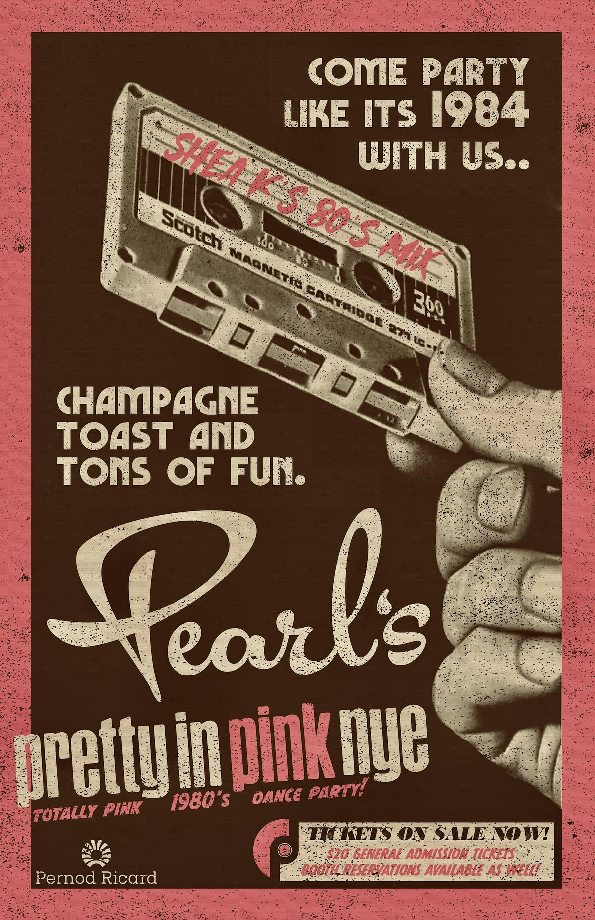 Join us starting at 9pm on NYE for a totally 80's dance party! DJ Shea K will be serving all the 80's heaters to keep you out of your seaters! Complimentary champagne toast at midnight. This is for general admission only tickets with standing room and bar service.