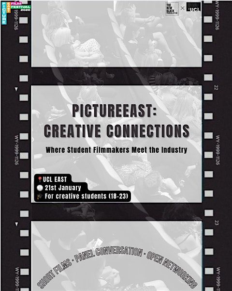 PictureEast: Creative Connections is a student-focused networking and panel evening designed to connect emerging filmmakers with industry professionals across film and screen media. The event champions Black and multicultural talent in East London, creating real pathways into the industry through conversation, visibility, and connection.