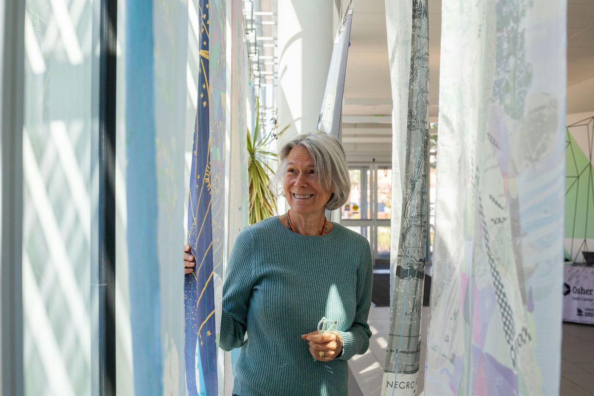 Have you passed through the ethereal banners hanging in the Glickman Library Arcade highlighting important women from Maine this year?Please join us in welcoming the 2026 Peggy Osher Artist Fellow, Adrienne Ottenberg, back to the Osher Map Library for a series of opportunities to learn more about her work, "Portraits with Maps: Independence and Betrayal in Maine". We'll be hosting 3 opportunities to meet with the artist and hear more about her cartography background, creative process, and research techniques.