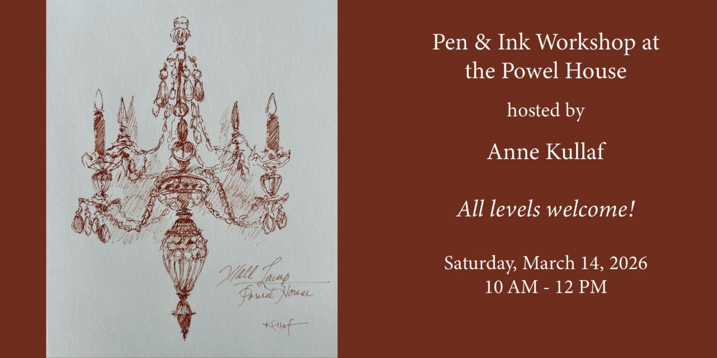 Join Anne Kullaf for a pen and ink workshop at Powel House, a historic home located in the Society Hill neighborhood of Philadelphia. We will focus on capturing the intricate details of the interior of the home--the woodwork, lighting, furniture, and any other details that inspire you. We will have access to the living room, ballroom, and other living spaces within the first and second floor of the house.