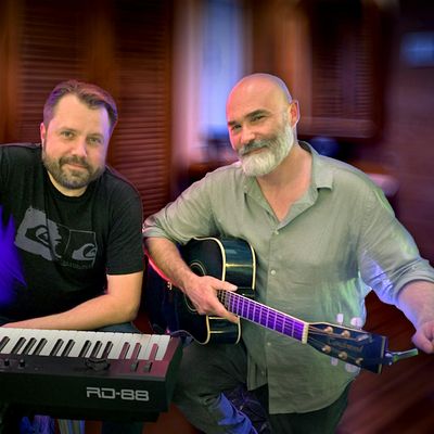 Acoustic duo Marcus Pendleton (keys) and Simon Ray (vocals, acoustic guitar) perform live at The Golden Cross in Coventry