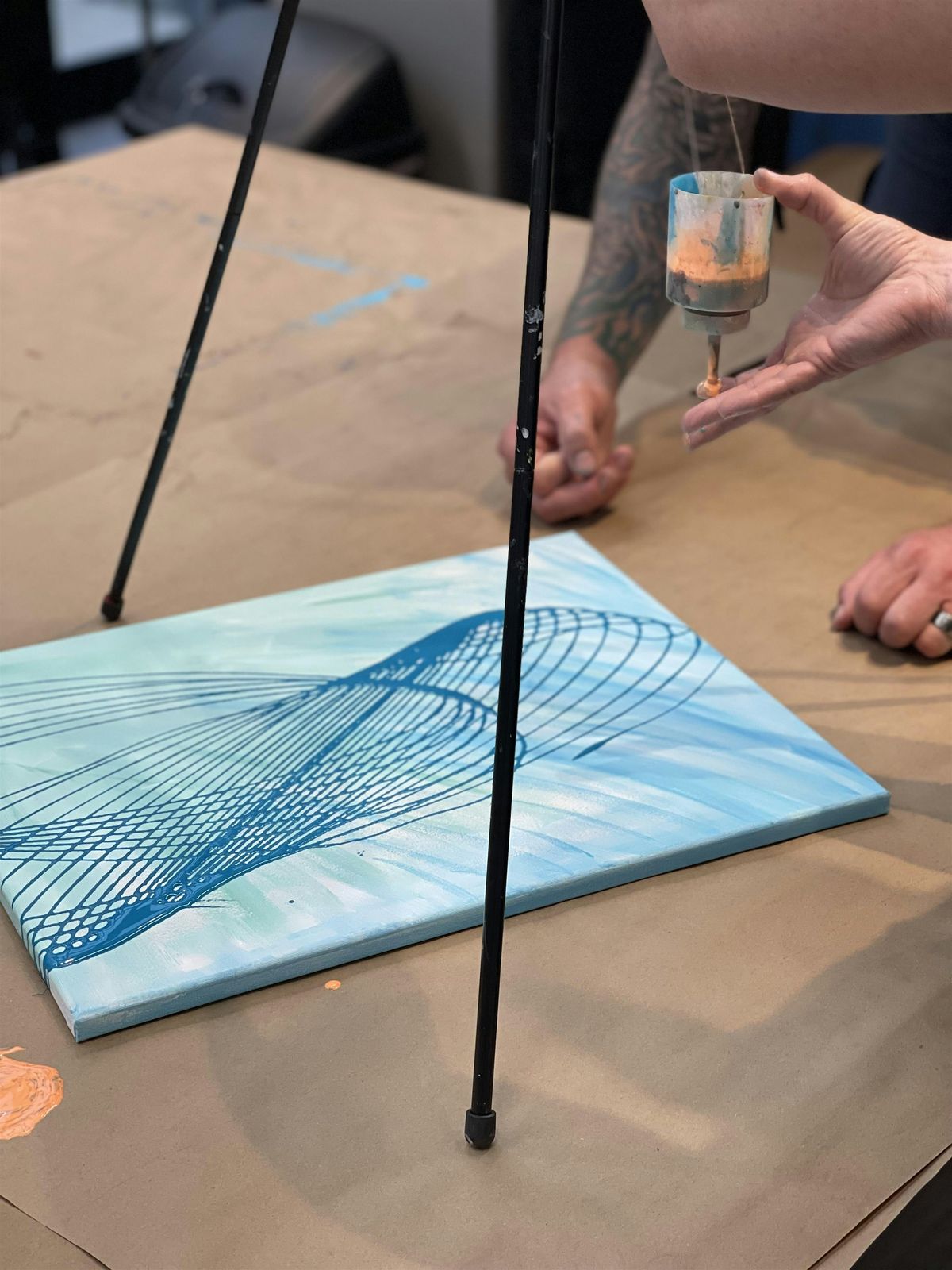 Fun for all ages. Makes for a memorable family fun activity, team building event, date night or girls night out! Express your personality and Create a colorful or subtle unique art piece/s using a Pendulum pouring technique. As friends or couples ,create a diptych to share or larger piece to beautify any space. All supplies included! Don’t forget to Wear clothes/shoes that might get messy! We will even slip some education and experimentation (art, phyics, science, etc.)