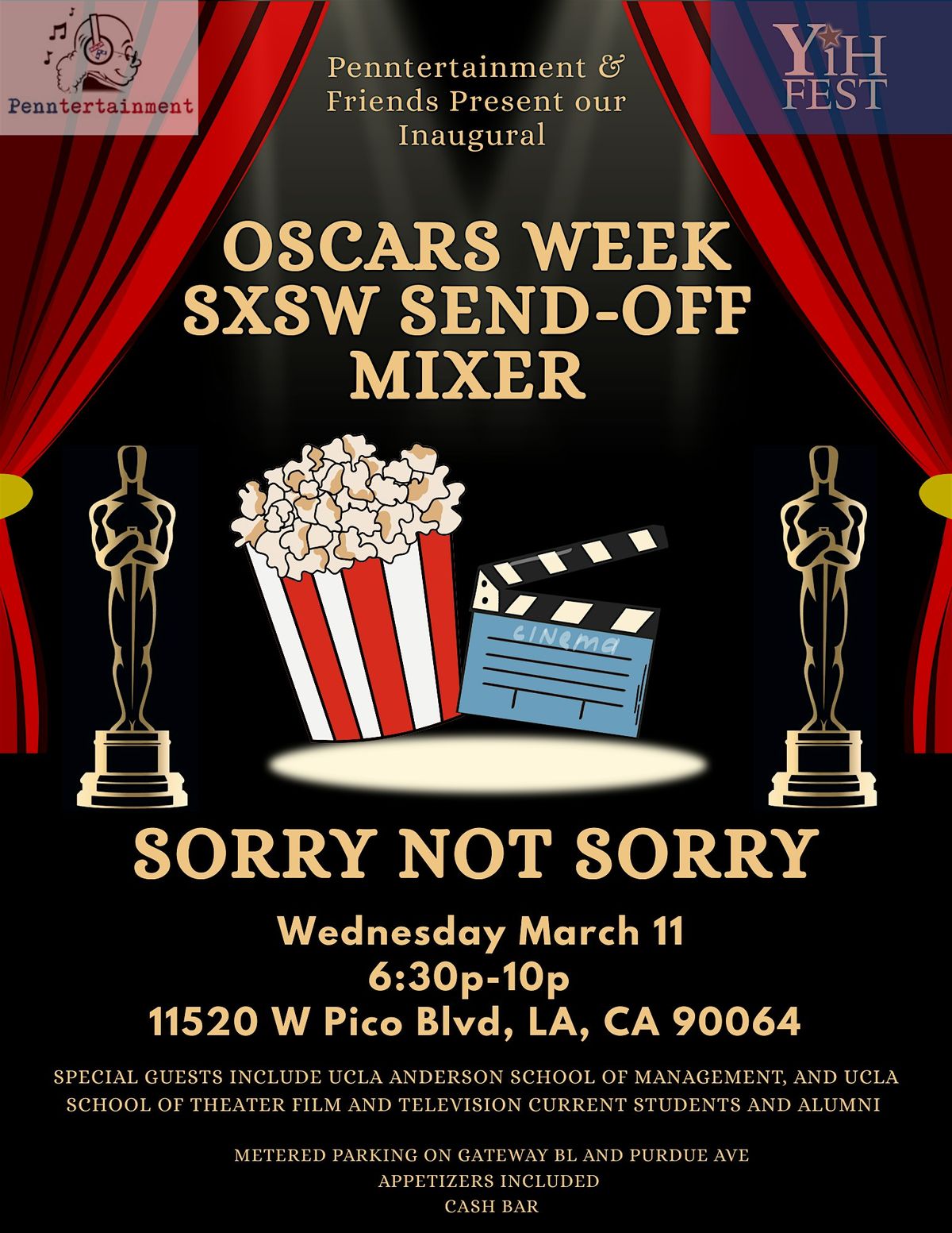 For the first time since before the pandemic, Penntertainment is inviting all current students and alumni from The UCLA Anderson School of Management (especially those in Media and Entertainment), and the UCLA School of Theater, Film and Television to join us along with Yale in Hollywood, Harvardwood, Harvard Business School, Brown Club of LA, and a host of other Ivy entertainment alumni communities in the arts and commerce to join us on the Westside for an Oscars Week Mixer.