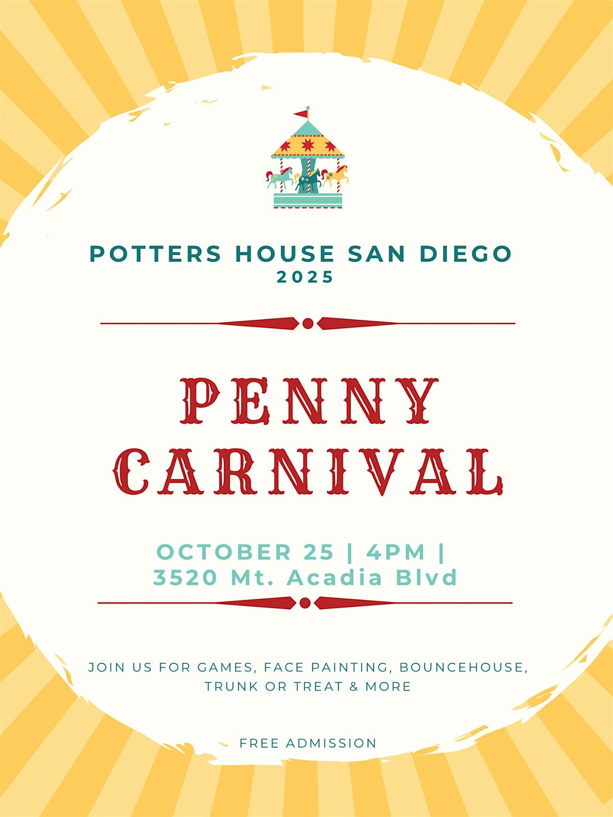 Welcome to Penny Carnival! Join us at The Potter's House Christian Fellowship Church for an afternoon of fun and games. Our carnival features exciting activities for all ages, from face painting to ring toss. Don't miss out on the delicious treats at our snack bar and the chance to win awesome prizes at our game booths. Bring your family and friends for a day filled with laughter and joy. See you there!