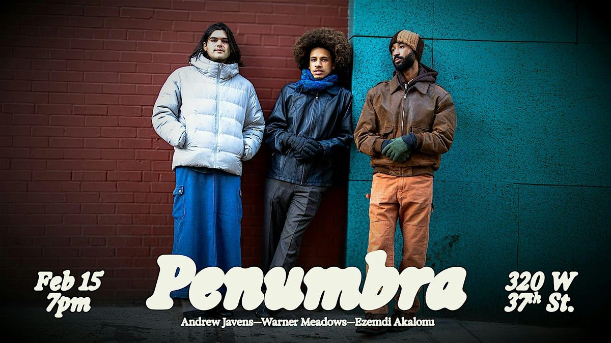 Penumbra is an ongoing musical exploration created by Warner Meadows, Ezemdi Akalonu and Andrew Javens. Drawing its name from the life and artistic legacy of Afro-Cuban painter Wifredo Lam, Penumbra seeks to illuminate and historicize the urgency of the current political moment through improvisation, poetry, and homage.