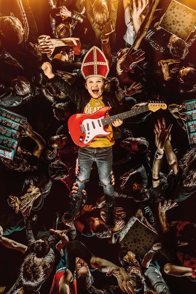 Dansen, zingen en springen tijdens aanstekelijk sinterklaasconcertWeleens een peuter wild zwaaiend met zijn fopspeen zien stagediven? Of driejarigen onbevreesd zien crowdsurfen? Dat zijn dingen die zomaar kunnen gebeuren bij het ‘Pepernotenpopconcert’. Dans tijdens dit swingende sinterklaasfeest heerlijk mee op ‘Zie Ginds Komt de Stoomboot, twist op ‘Sinterklaas Kapoentje’ of zwijmel weg op ‘Zachtjes gaan de Paardenvoetjes’. Alles mag, net als bij een echt popconcert. Je hoort sinterklaasliedjes zoals je ze nog nooit gehoord hebt, zodat jij straks in december tijdens het zingen de show kunt stelen. Het wordt een spetterende voorstelling vol muzikale cadeautjes, stoere gitaarsolo’s, een vette lichtshow, dansende (groot)ouders en springende kleuters.