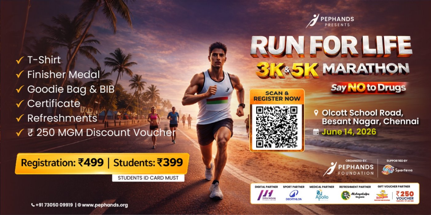 Whether you are a professional athlete, a fitness enthusiast, or someone who wants to walk for a cause, this event is for you. Set against the beautiful backdrop of Chennai’s coastline, we invite you to lace up your running shoes and make your miles matter.