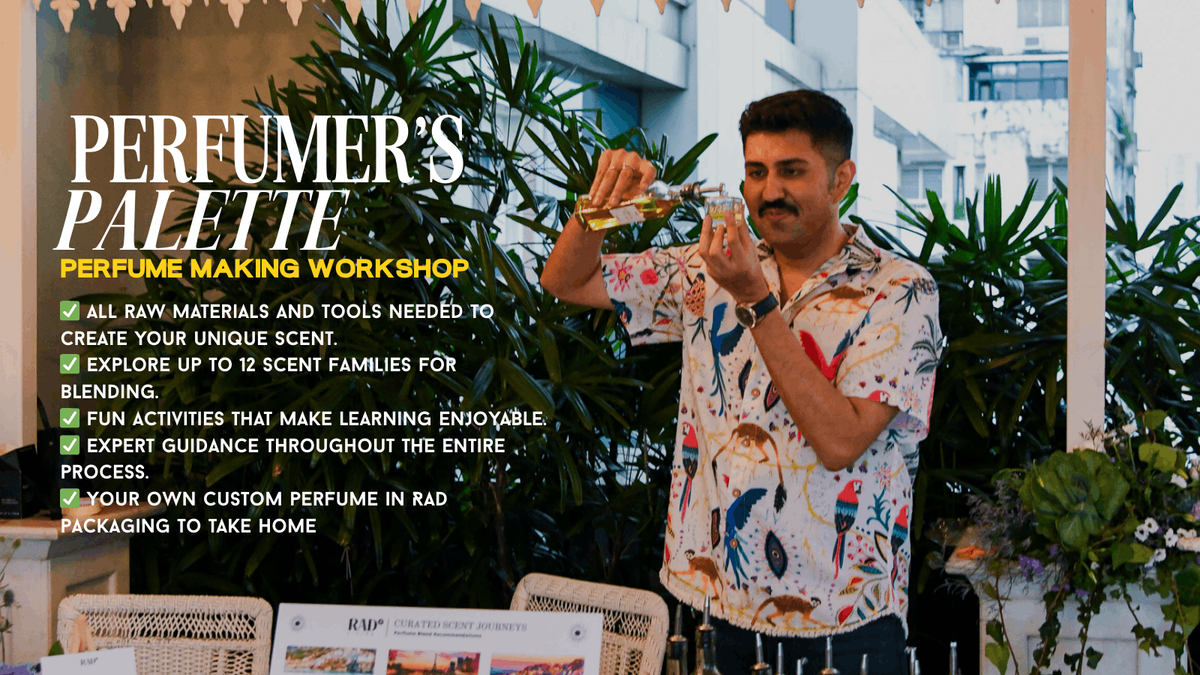 Step into the luxurious world of perfumery with our Perfume Making Workshop, where you'll discover the art of crafting your very own signature fragrance. Whether you're a seasoned scent lover or a curious beginner, this workshop will guide you through the fascinating process of perfume creation.✅ All raw materials and tools needed to create your unique scent.✅ Explore up to 12 scent families for blending.✅ Fun activities that make learning enjoyable.✅ Expert guidance throughout the entire process.✅ Your own custom perfume in Rad packaging to take home