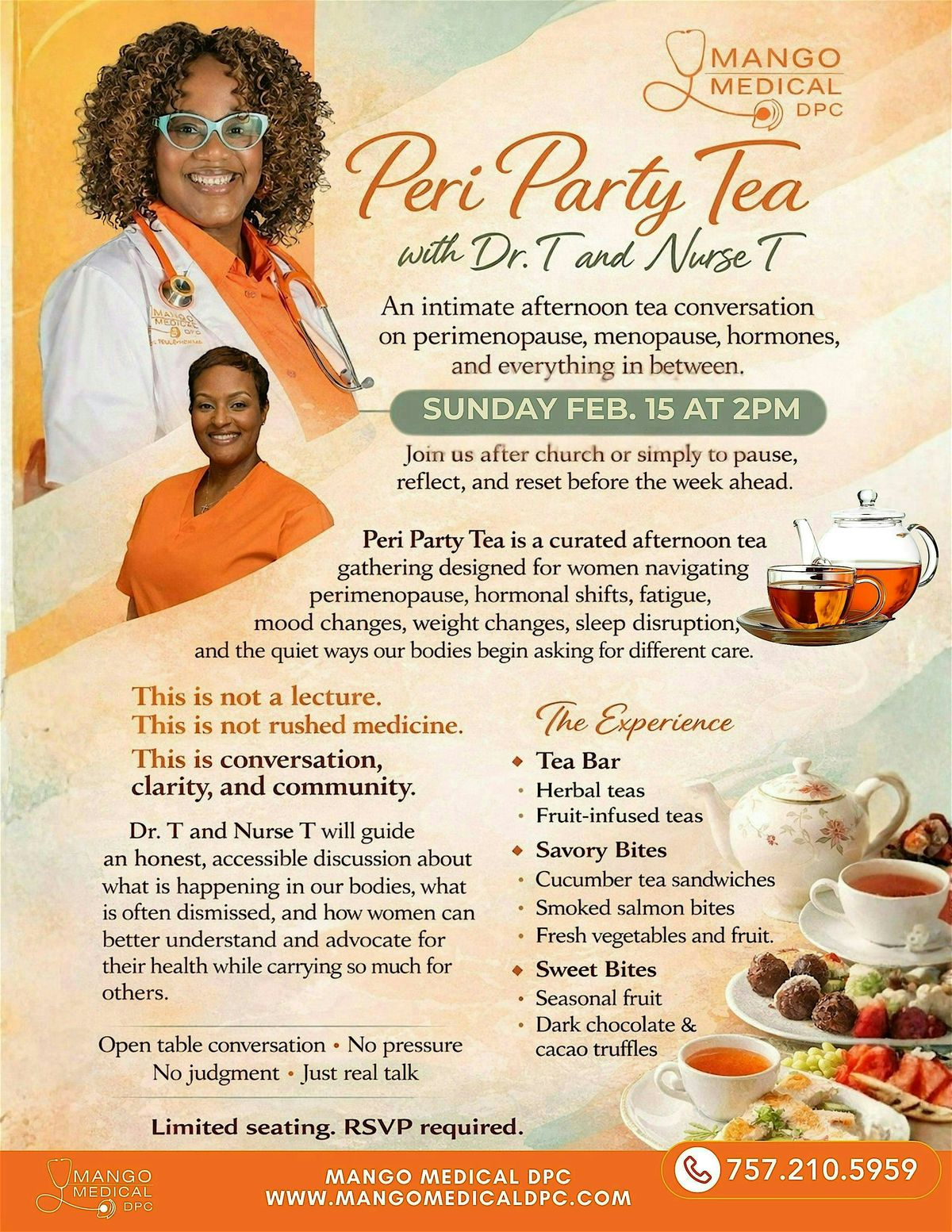 Peri Party Tea is a curated afternoon tea gathering designed for women navigating perimenopause, hormonal shifts, fatigue, mood changes, weight changes, sleep disruption, and the quiet ways our bodies begin asking for different care.