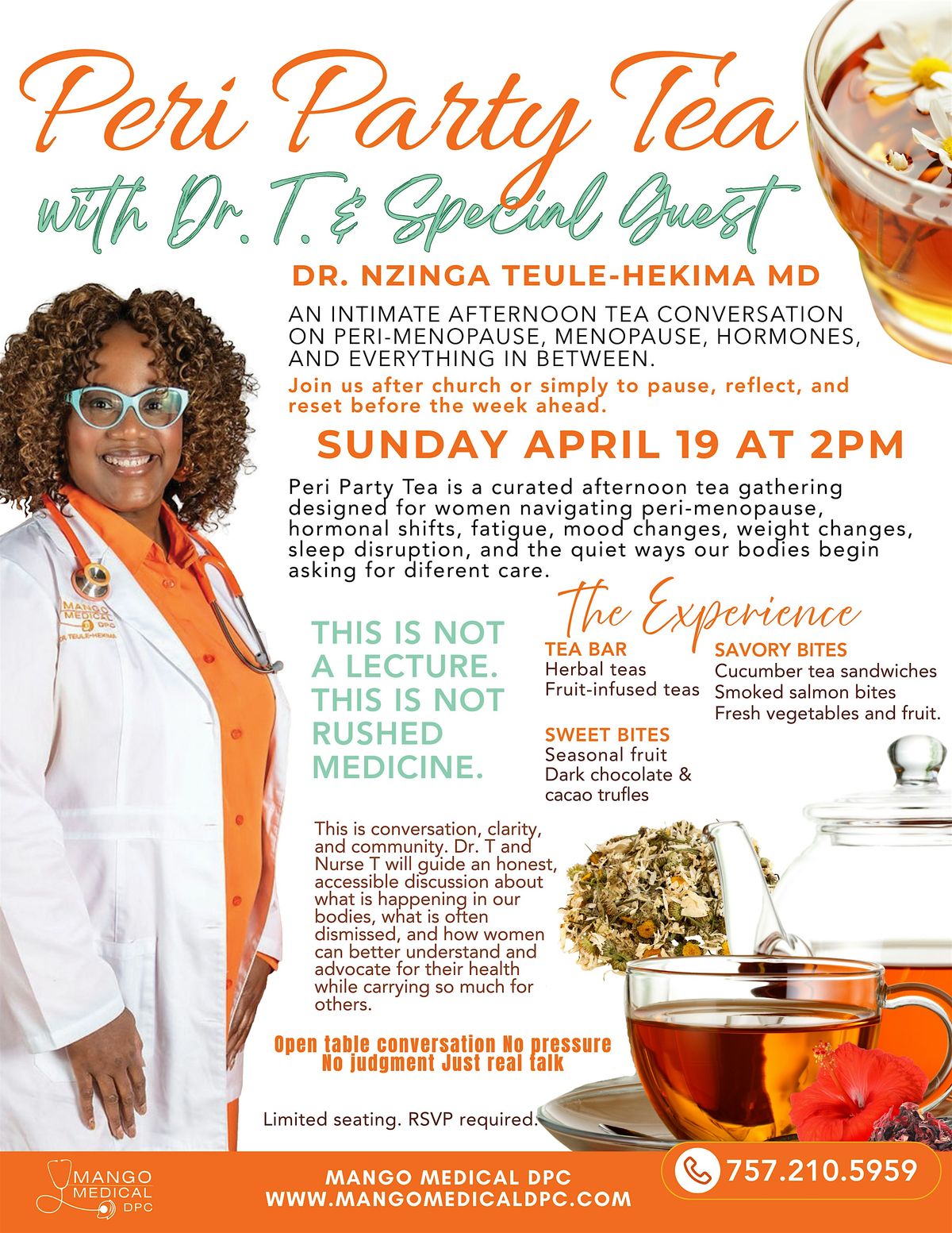 Peri Party Tea is a curated afternoon tea gathering designed for women navigating perimenopause, hormonal shifts, fatigue, mood changes, weight changes, sleep disruption, and the quiet ways our bodies begin asking for different care.