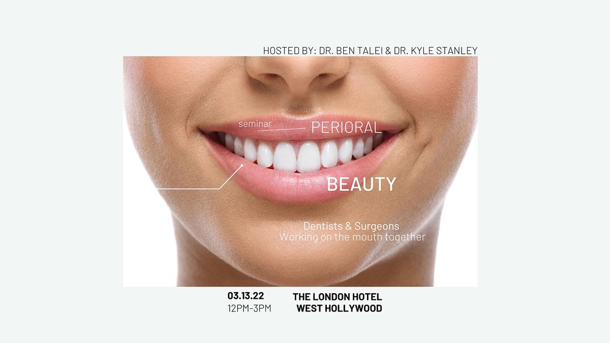 A one time, free of charge, limited-seated seminar event at The London West Hollywood Hotel where world renowned facial plastic surgeon Dr. Ben Talei will be speaking on the art of personal enhancement and the beauty of the smile joined by cosmetic dentist and world renown lecturer Dr. Kyle Stanley - both members of the Orofacial Club.