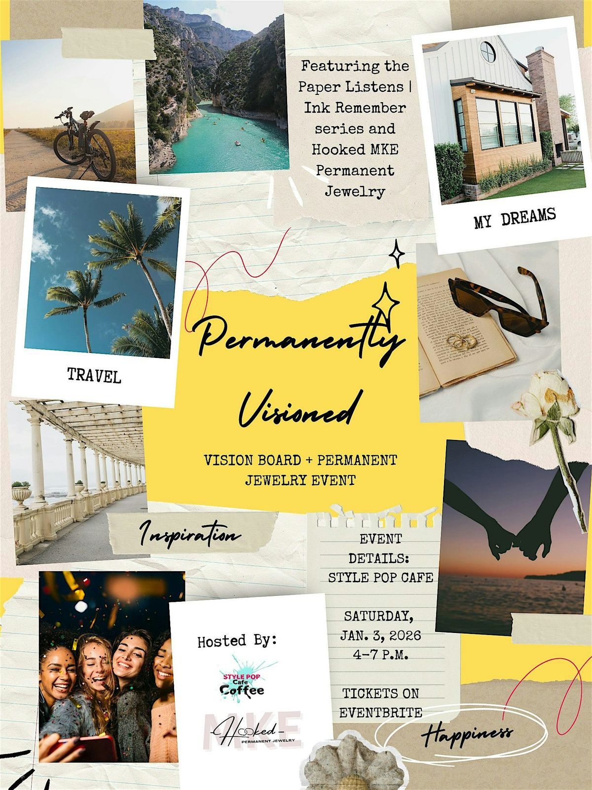 Get ready for Permanently Visioned, an awesome in-person event where creativity meets inspiration! Dive into a day centered around manifesting your visions, using creative vision board creations that uniquely set the path and intention for your 2026 vision. We've partnered with Hooked MKE who will be providing permanent REAL and AUTHENTIC jewelry pieces for all attendees.